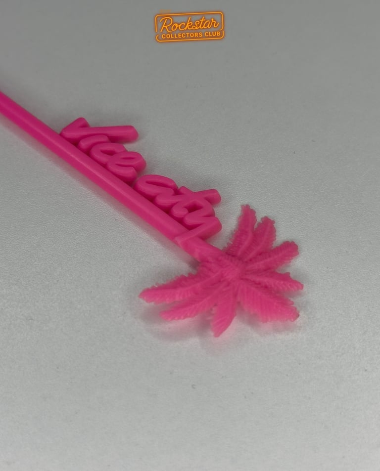 Ce mélangeur à cocktails, utilisé lors de la soirée de lancement du jeu en 2002, présente un embout en forme de palmier et arbore le logo « Vice City ».