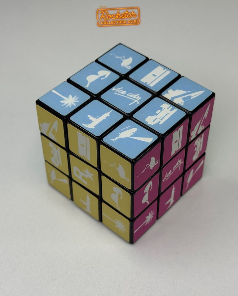 Ce Rubik’s Cube, jouet emblématique des années 80, intègre plusieurs éléments typiques du jeu comme le flamant rose ou encore les palmiers de Vice City. Cette version a été redesignée pour célébrer le 10ᵉ anniversaire du jeu en 2012.
