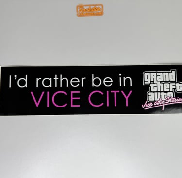 Cet autocollant de pare-chocs « I’d rather be in Vice City » était distribué dans les magasins spécialisés et lors d’événements promotionnels. Il était également offert en cadeau aux journalistes et à la presse.