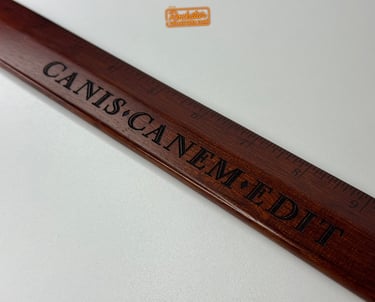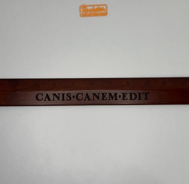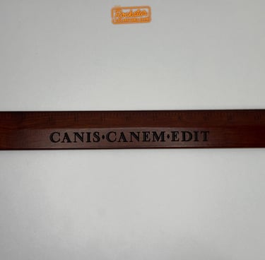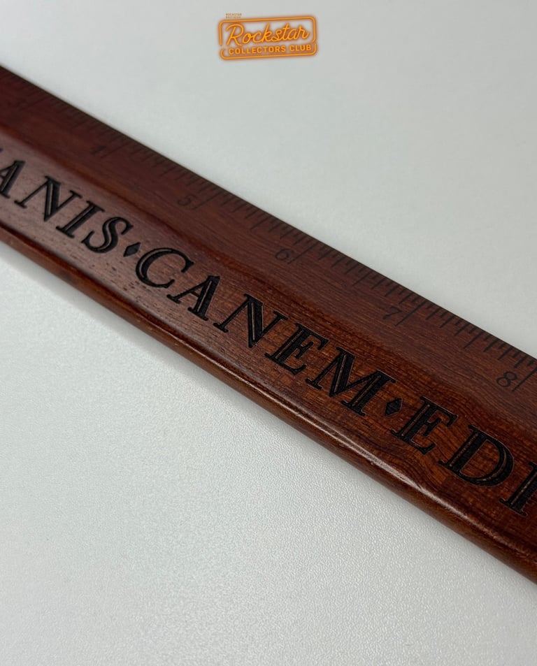 Cette règle en véritable bois, ornée du logo Canis Canem Edit et de l’écusson de l’école du jeu, était à remporter lors du Harrington House Contest.