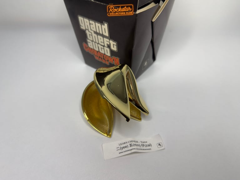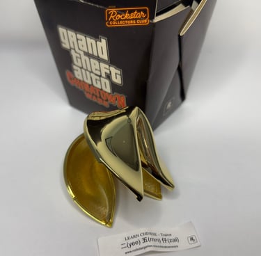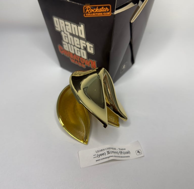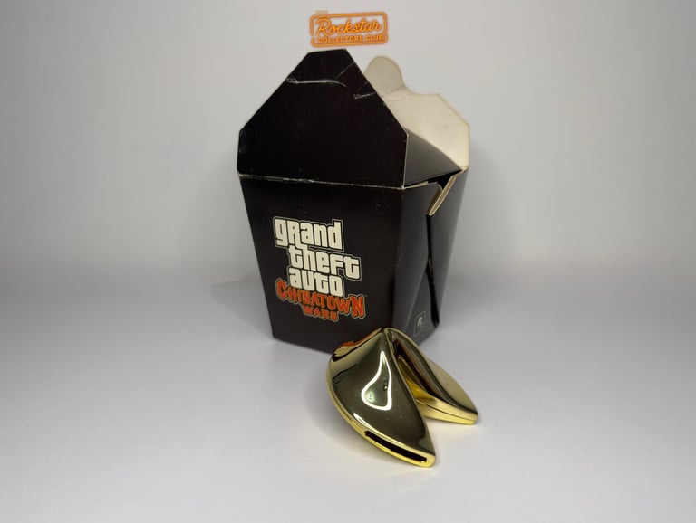 Une boite de nouilles à emporter qui contient un cookie de la fortune dorée qui est entièrement fait de laiton, avec un petit mot à l'intérieur… Cette boite était distribuée seulement aux États-Unis pour faire la promotion du jeu.