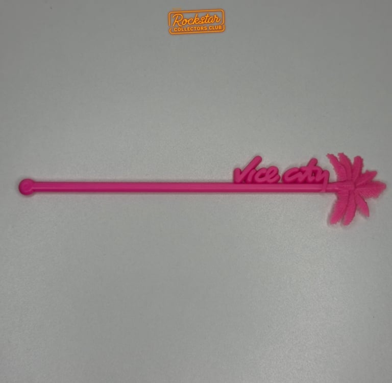 Ce mélangeur à cocktails, utilisé lors de la soirée de lancement du jeu en 2002, présente un embout en forme de palmier et arbore le logo « Vice City ».