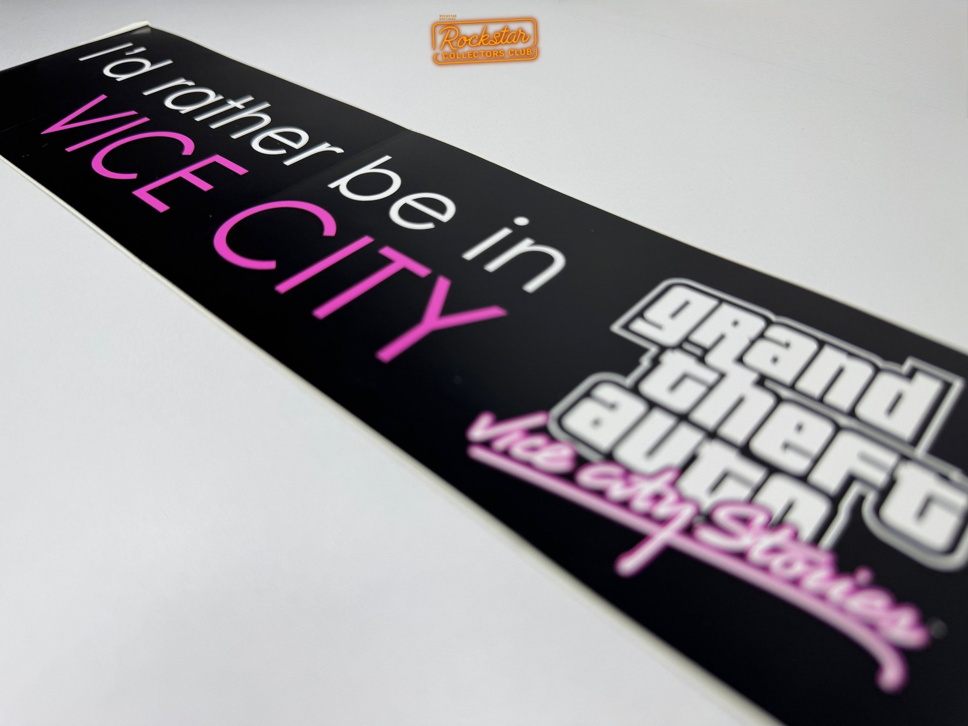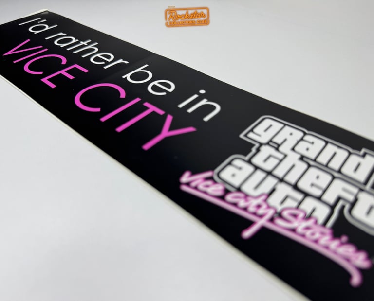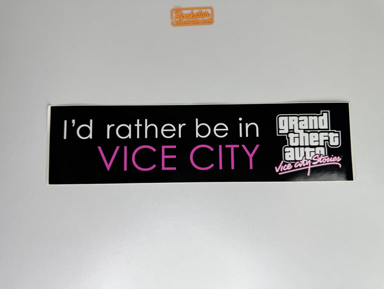 Cet autocollant de pare-chocs « I’d rather be in Vice City » était distribué dans les magasins spécialisés et lors d’événements promotionnels. Il était également offert en cadeau aux journalistes et à la presse.