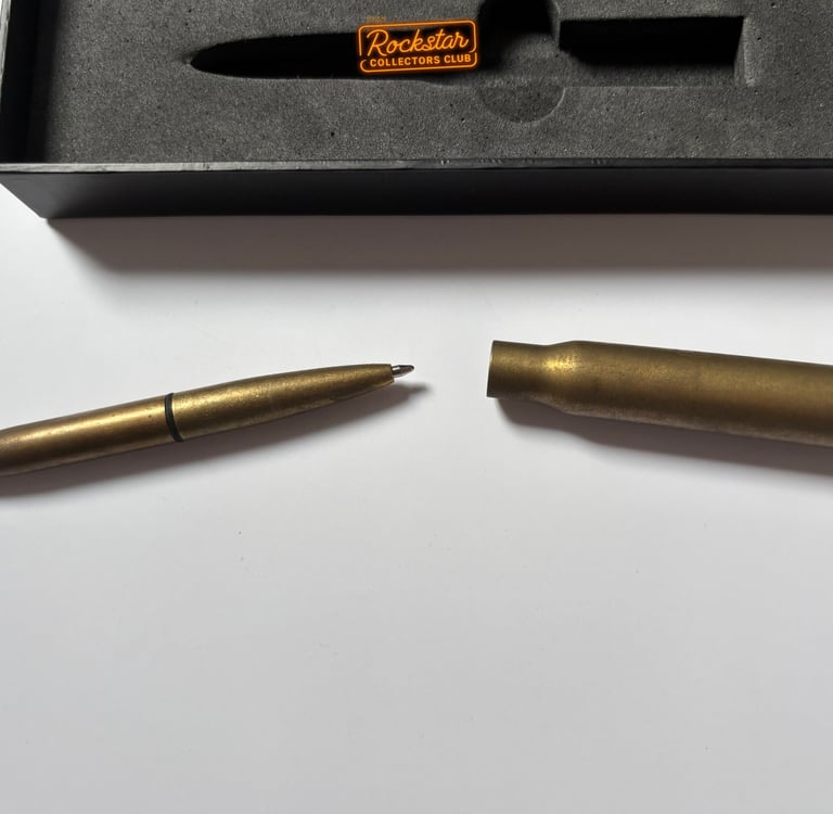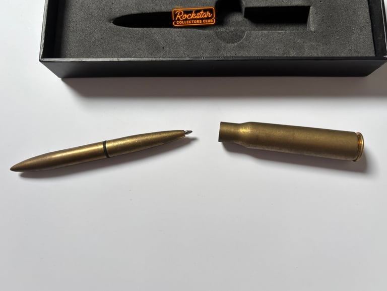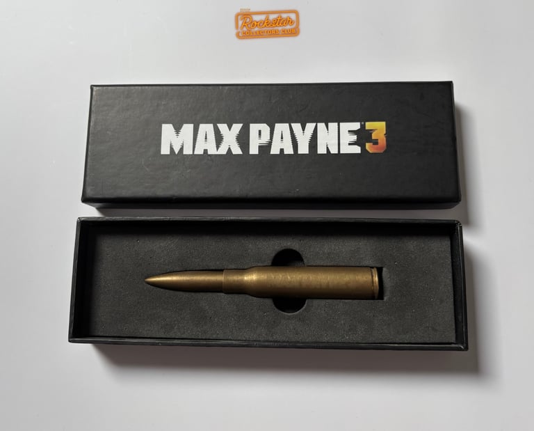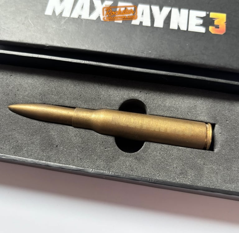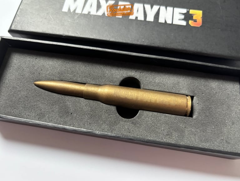 Le stylo-bille, en forme de balle de fusil de calibre .50, est en laiton et présenté dans une boîte arborant le logo du jeu. Il était possible de se le procurer sur la boutique Rockstar.