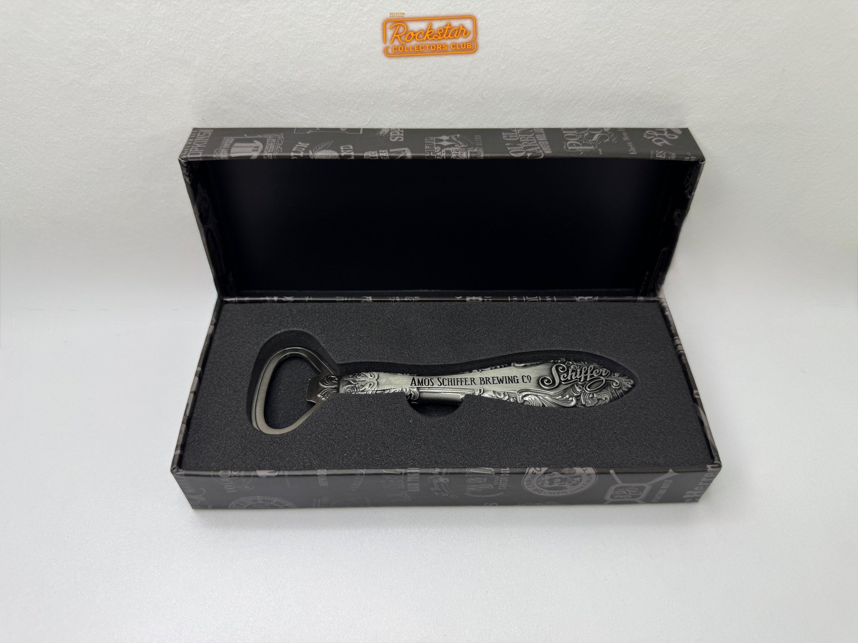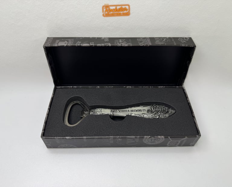 Ouvrez vos bières et autres boissons à capsules grâce à ce décapsuleur en métal décoré du logo du jeu et de la marque Amos Schiffer Brewing Co.