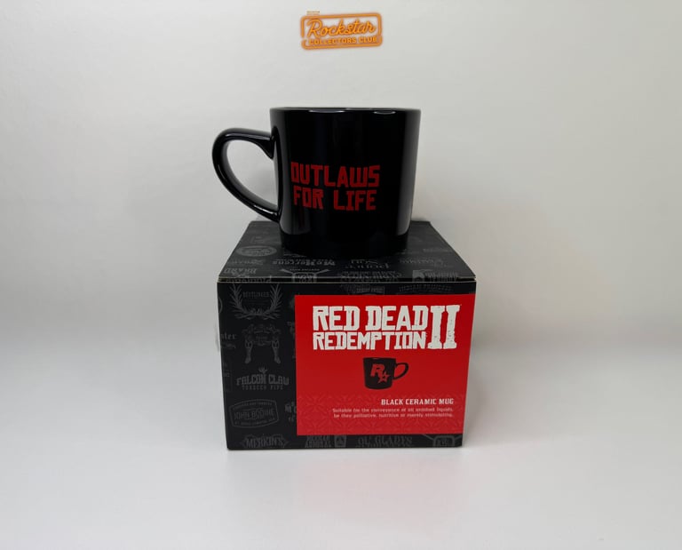 Un mug en céramique noire, décoré de l’inscription « Outlaws for Life » et du logo Rockstar Games en linogravure. D’une contenance d’environ 30 cl, il convient à toutes les boissons, qu’elles soient stimulantes, désaltérantes ou réconfortantes.