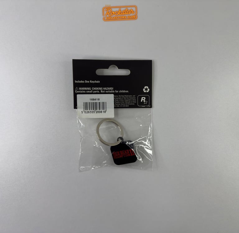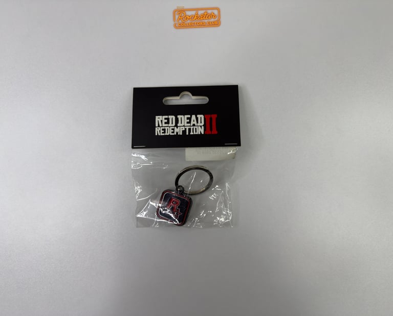 Conservez vos clés en sécurité avec ce robuste porte-clés rouge en métal. Un logo Rockstar Games noir a été gravé au recto et un logo Red Dead Redemption 2 noir au verso.