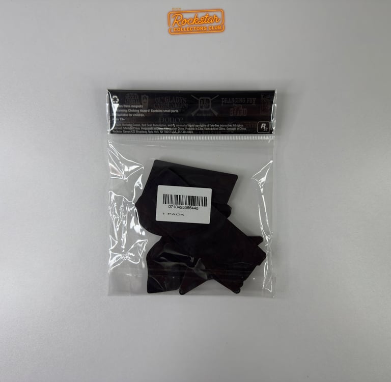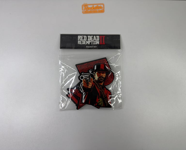 Le set contient trois magnets : le logo Rockstar Games, un portrait d’Arthur Morgan et le logo du jeu.