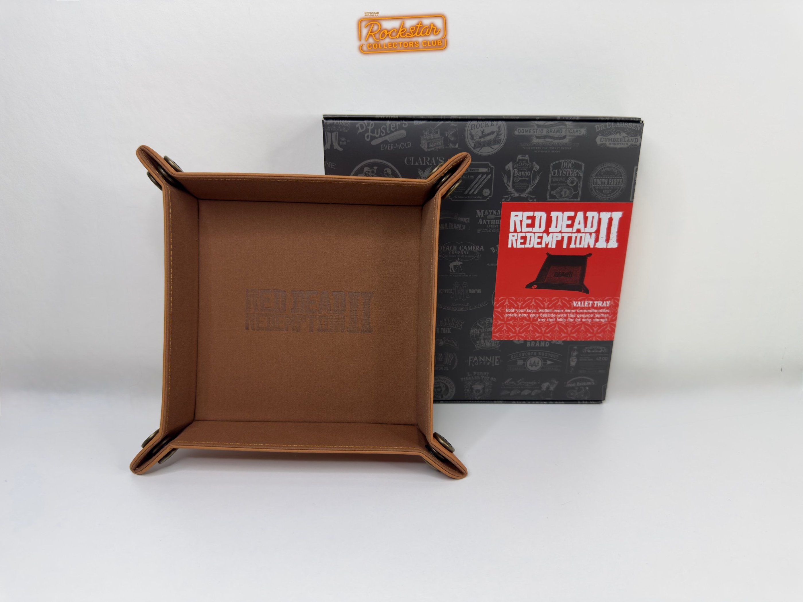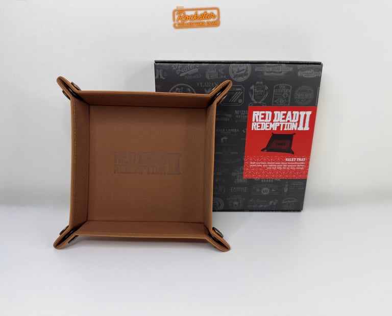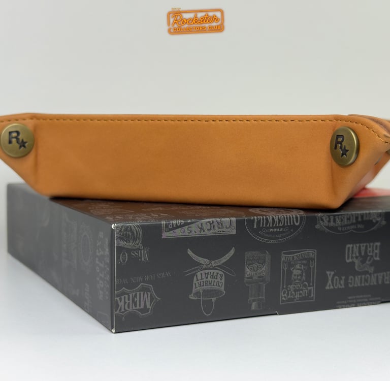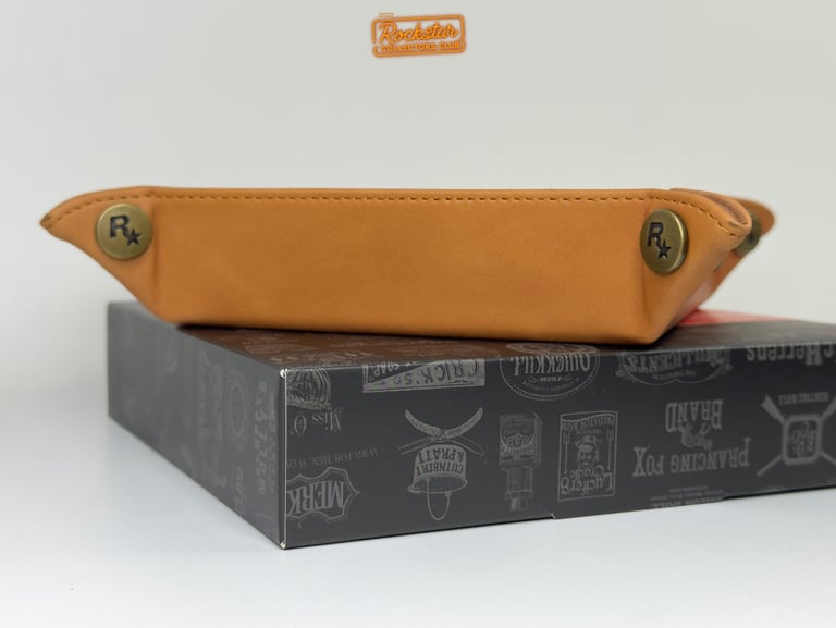 Rangez vos clés, votre portefeuille et tout ce que vous voulez sur votre table de nuit grâce à ce vide-poche en cuir véritable. Le logo du jeu est embossé au fond, tandis que le logo Rockstar Games apparaît sur les quatre coins.