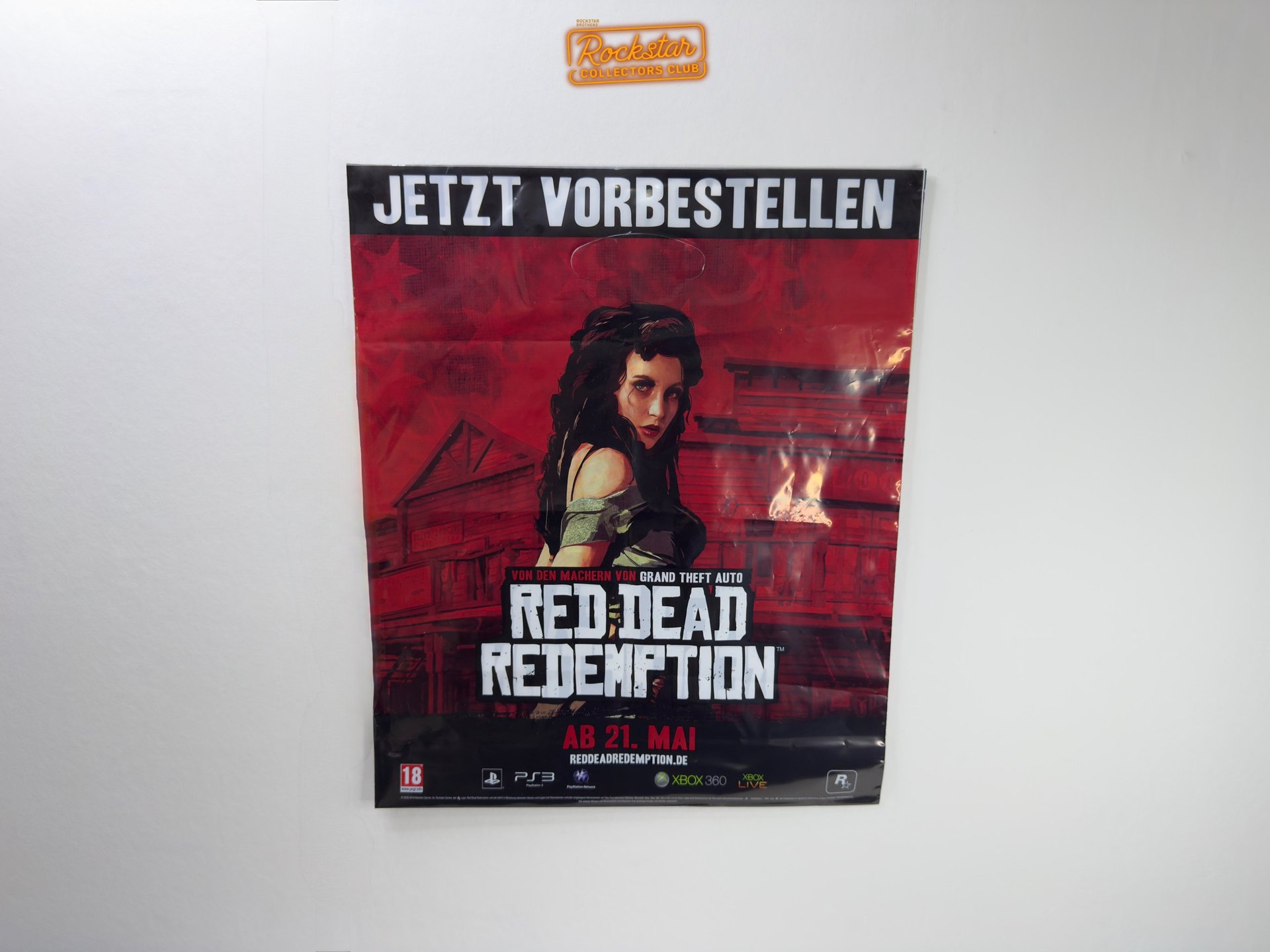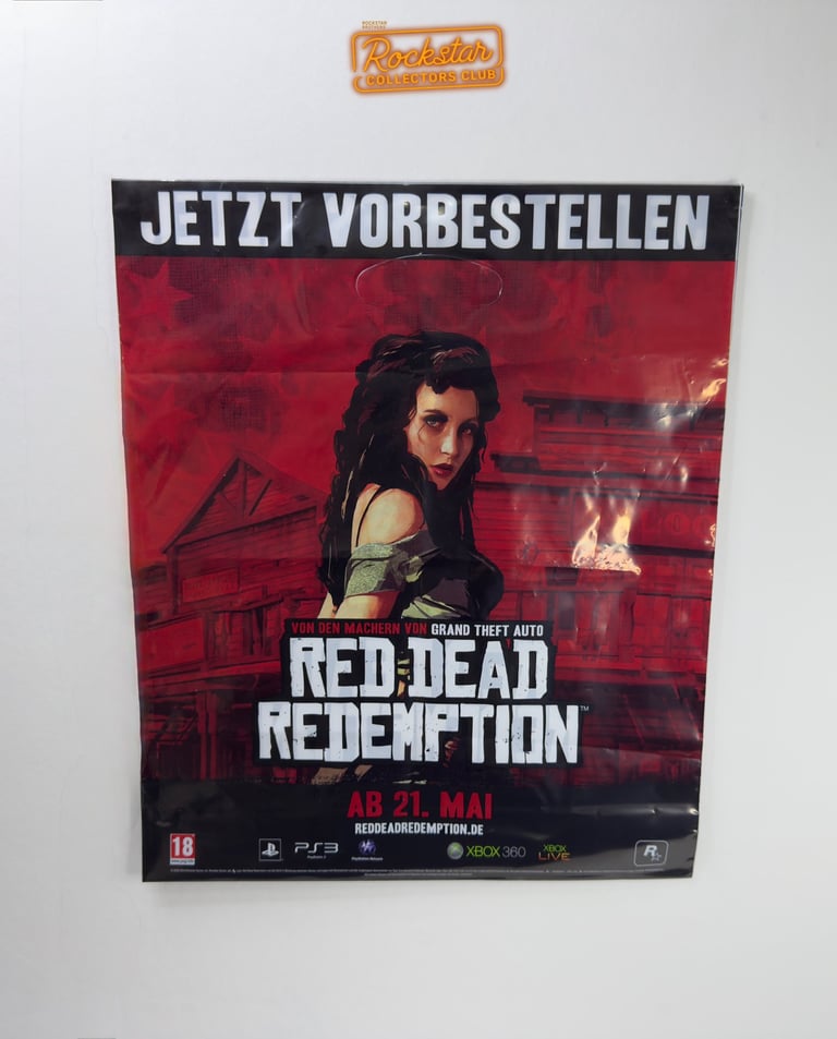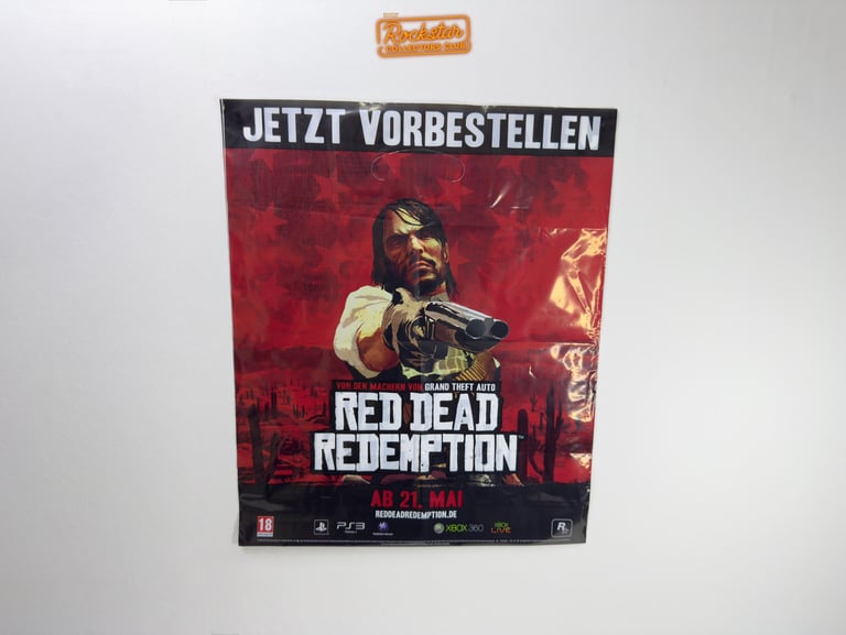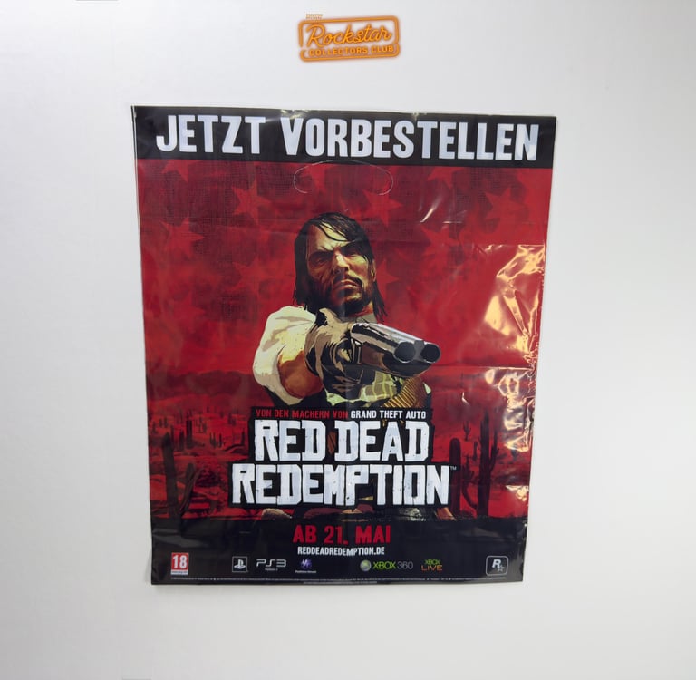 Le sac présente deux illustrations de personnages : John Marston et la Scarlet Lady, une serveuse du saloon d’Armadillo. Ce type de sac était fréquemment offert dans les magasins de jeux vidéo spécialisés lors d’achats, afin de promouvoir le jeu.